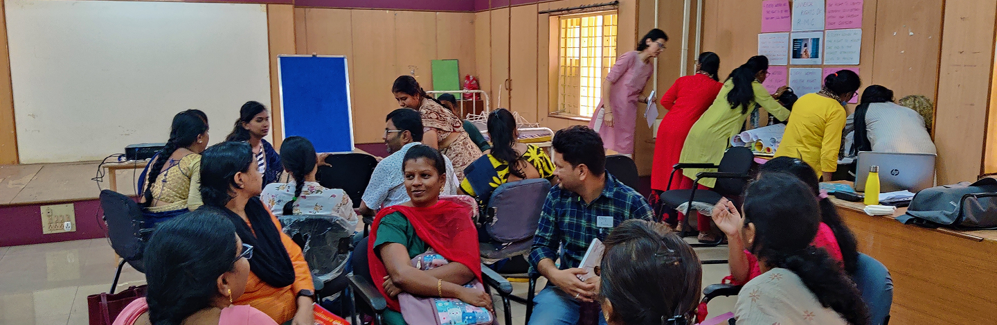 Respectful Maternity Care (RMC) is a core offering of Aastrika’s Sphere’s in-person programmes, sensitising all health facility stakeholders — security guards, pharmacists, helpers, nurses, management and doctors — to deliver respectful, dignified, and empathetic care to women. The training is conducted through interactive workshops using simulations, role plays, and more.